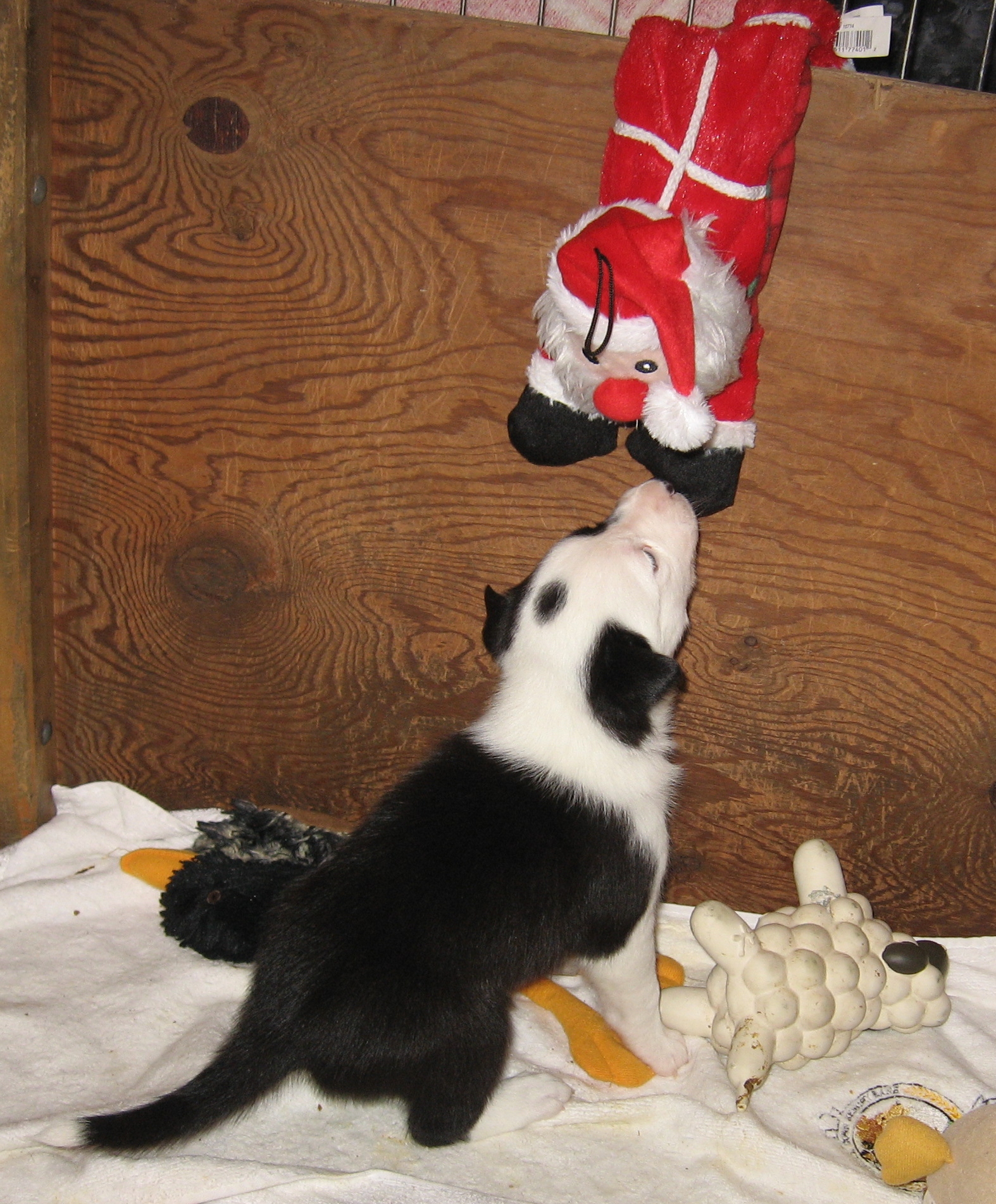 Xen Calvin 4 wks Katie- Dot getting Santa