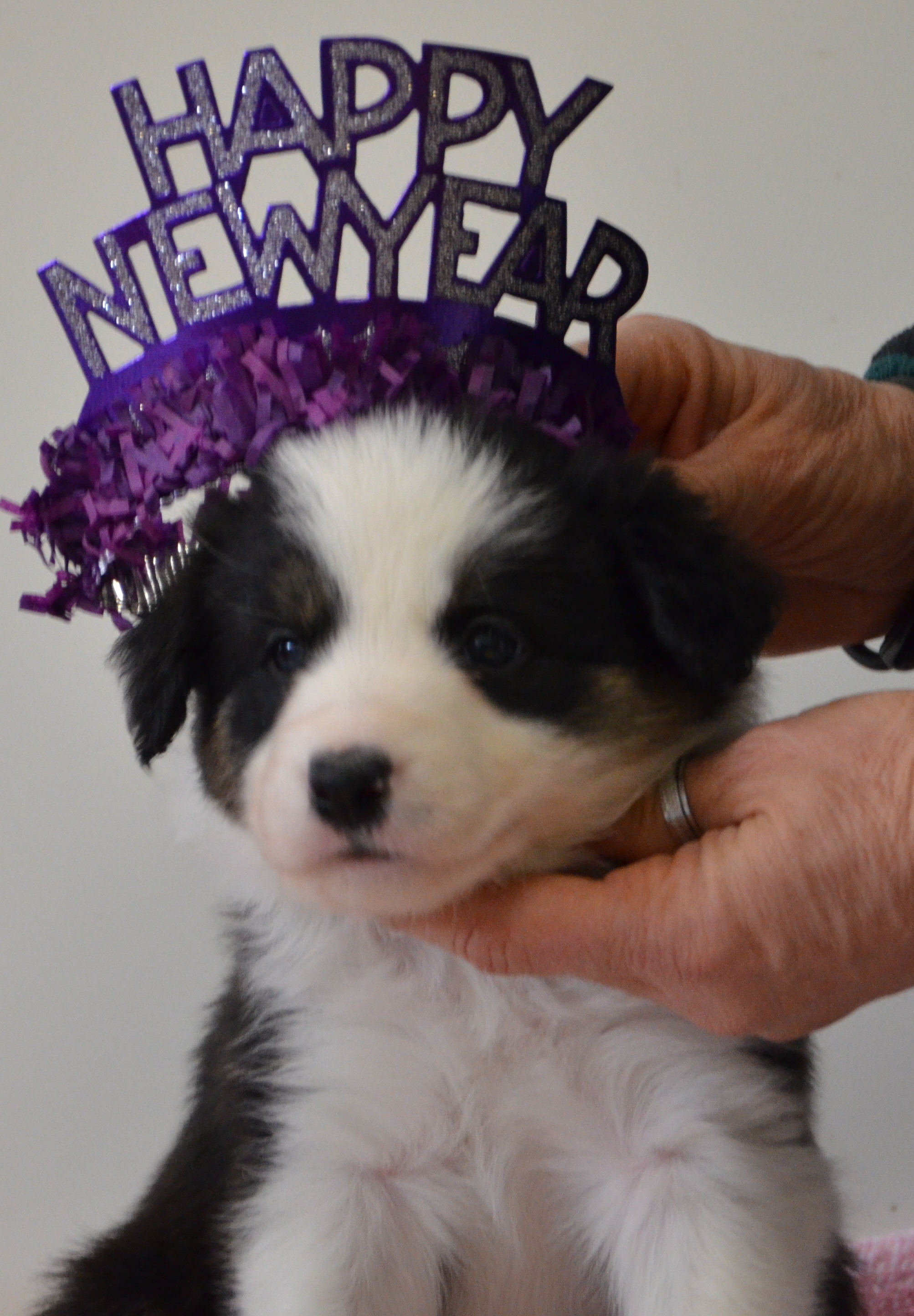 I will be attaching pictures of the puppies who will be 5 wks tomorrow. Liz came to visit again with her great camera. We thought you might like to see how the puppies celebrated the New Year.